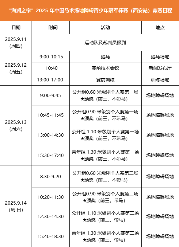 9月12日至14日,2025中国马术场地障碍青少年冠军杯赛(西安站)将在秦汉国际马术中心启幕。