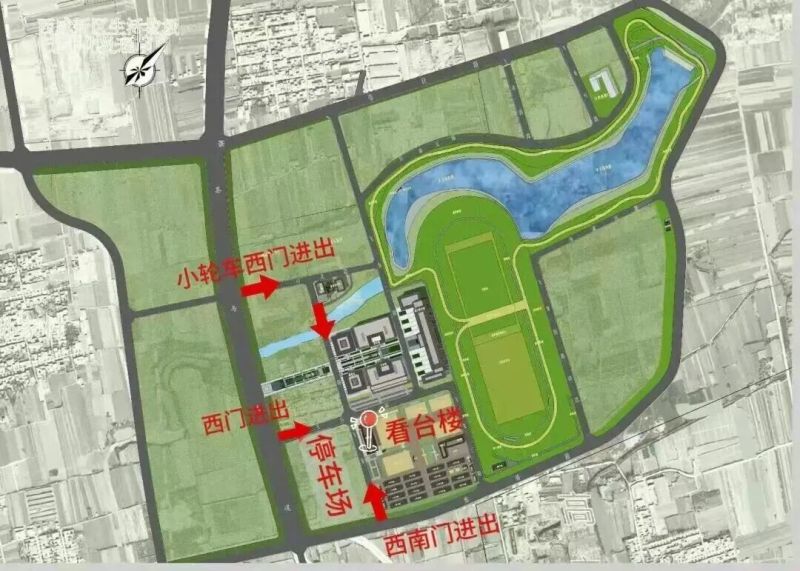 导航至秦汉国际马术中心,可由西门、西南门或小轮车西门进出。