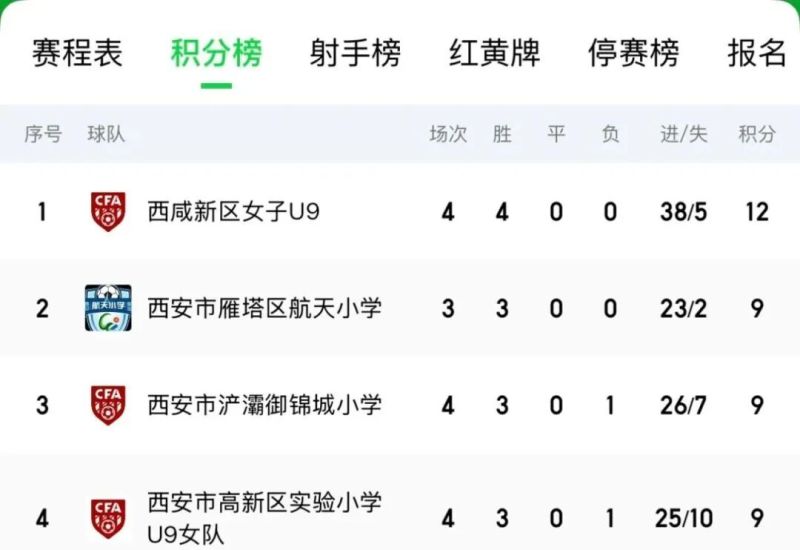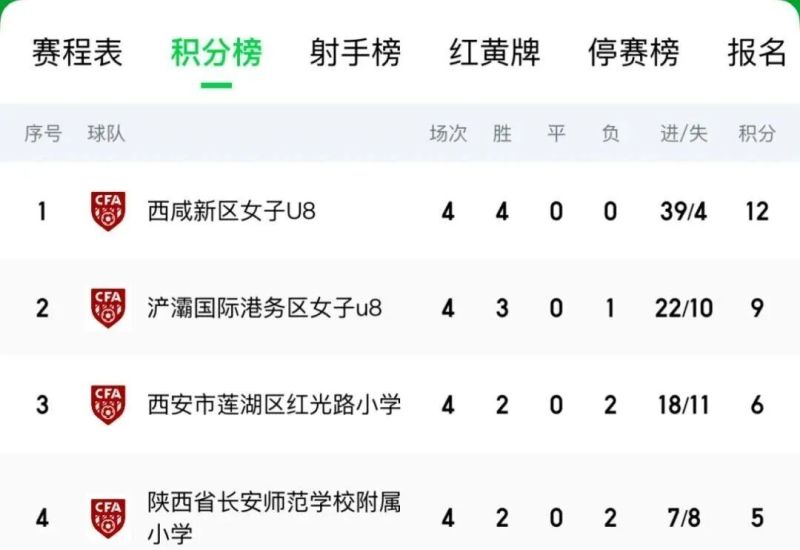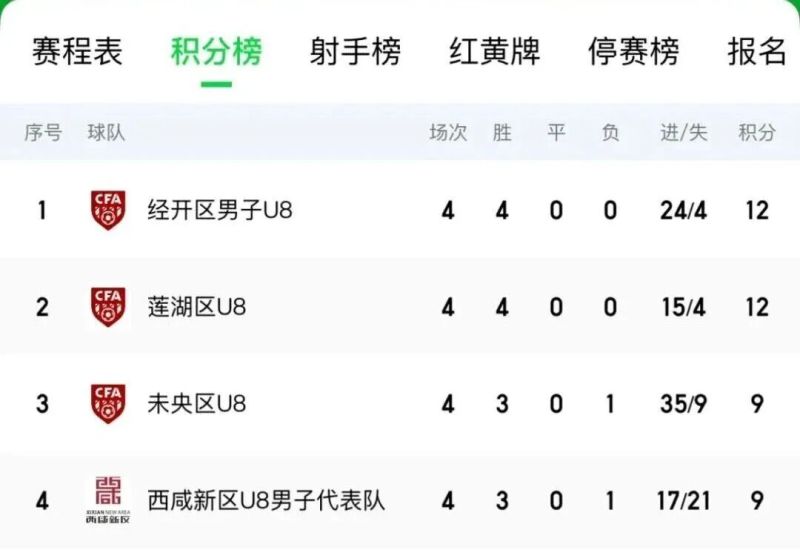 截至目前,赛事已完成前4轮比赛。依据积分排名,男、女子U8组及U9组各有4支代表队暂时位列前茅,本周周末将继续开展后续赛事。