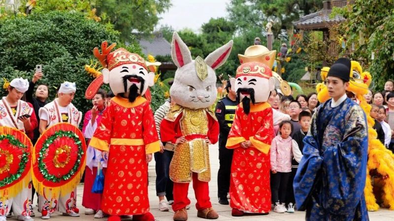 每天近300 场非遗演艺轮番上演,舞龙醒狮的锣鼓声极具节日感,安塞腰鼓的激昂节奏让人忍不住踏着鼓点相和,还有高跷杂技的惊险动作、钢枪承喉的震撼表演,每一场都能让你融入热闹氛围。此外,园内还有30多位国风NPC随时“出没”,遇到“唐诗体验官”李白,大胆跟他对诗,赢到的“银票”还能当景区购物抵用金,好玩又划算。