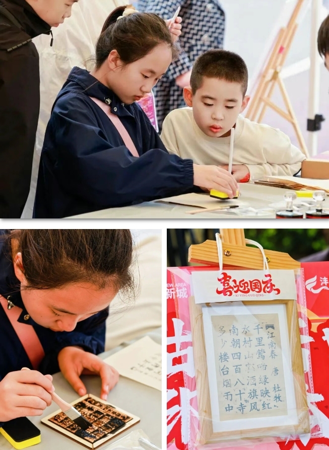 汉风广场的活字印刷体验区墨香阵阵,工作人员会提前备好字块和宣纸,你只需自由组合喜欢的字——不管是古诗名句,还是美好祝福,都能在宣纸上拓印出来,亲手感受活字印刷的巧妙,还能把自己拓印的作品带回家。