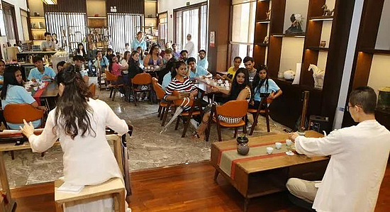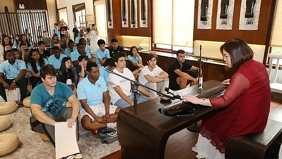 随后,学生们还走进中国古琴博物馆,体验古琴文化,观赏特色真人情景剧《风雅颂》,参加了茶艺和诵经的体验活动。伴随着清朗的琴声,有人闭眼感受,有人低语吟唱。