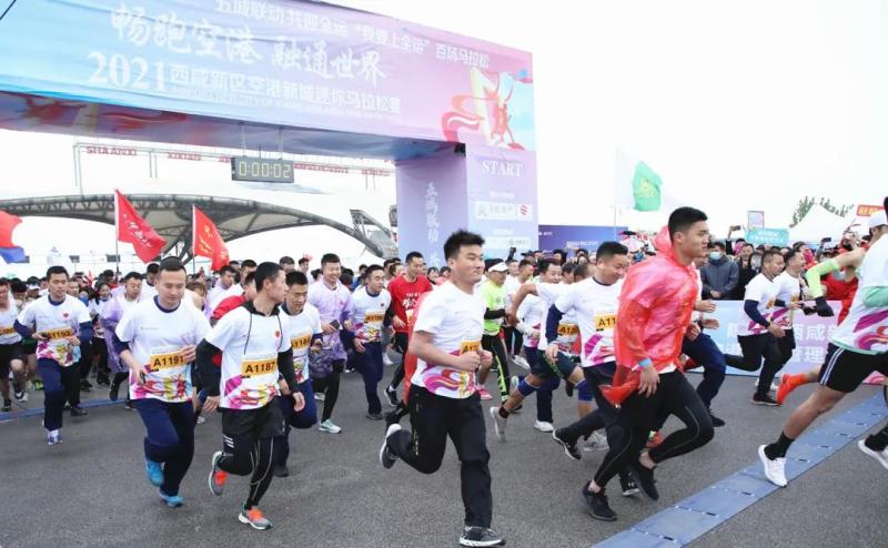 4月24日上午9时“我要上全运”百场马拉松“畅跑空港,融通世界”2021西咸新区空港新城迷你马拉松赛正式开赛,来自省内外的千名参赛者激情开跑。