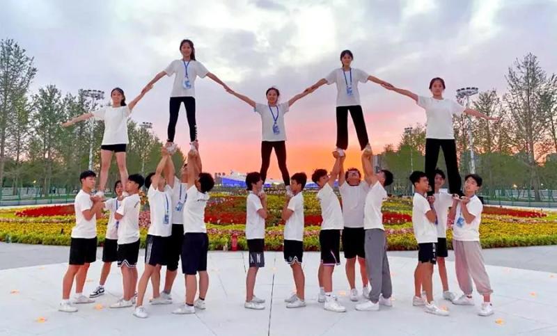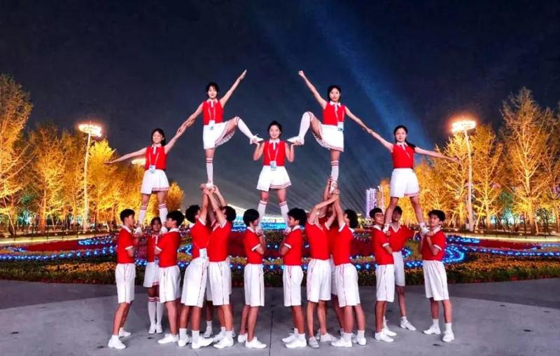 19名沣东少年来自陕西师范大学奥林匹克花园学校的OGS(Olympic Garden School)啦啦操队,他们参演的是文艺展演第三篇章《中国梦》的开篇节目《幸福你就跳起来》。
