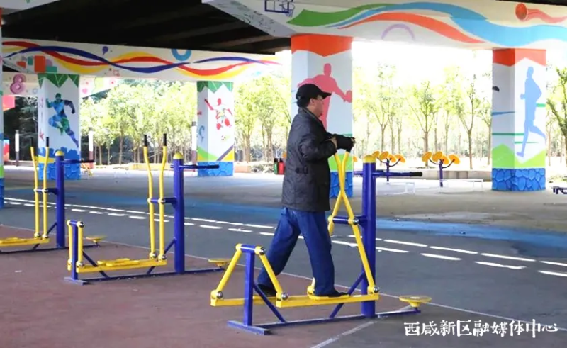 在西咸新区沣东新城,今年“上新了”31套健身器材,其中8套儿童器材,1套室内健身房,分布在三桥街社区,华润社区,奥园西社区等社区内。最特别的一个,就是沣东新城镐京大道绕城下穿区域的运动休闲广场,广场分为东西两片区域,配备了乒乓球、羽毛球等球类区域,还有一些基础的健身器材,辅以彩色涂鸦墙面和运动塑胶地面,同时提供充足休闲椅供使用者休憩。满足附近居民健身需求的同时,也给附近的上班族提供了休闲场地。