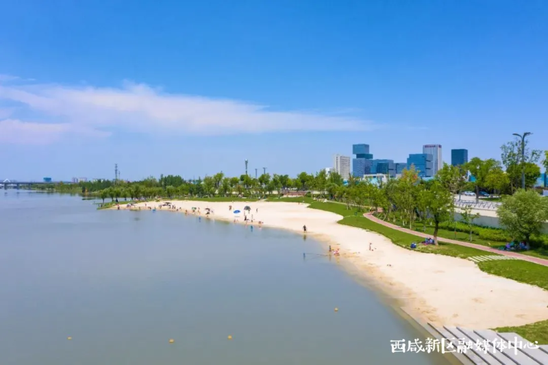 拥有千亩景观水面、生态林带的沣河金湾,是市民运动、健身的好去处。在这里,运动无处不在。迎着朝阳打太极的老大爷,落日余晖中跑步的小情侣,岸边亲水广场上滑滑板的小朋友……每个人都可以找到自己喜欢的运动方式。