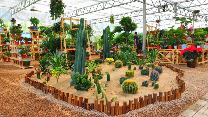 红叶苋菜、桐蒿、水果黄瓜、香炉南瓜、蛇豆……在蔬菜种植体验区,20余种蔬菜在田间奋力生长,放眼望去绿荫葱葱,供游客采摘及体验农耕的乐趣。在温室花房展示区涵盖了200多个品种,2000多盆绿植可供欣赏,花房还根据不同绿植的生长特性分成了不同的养殖区,包括沙漠景观区、热带雨林区、多肉区以及常见盆景区,在便于养护的同时更有利于游客精准观赏。