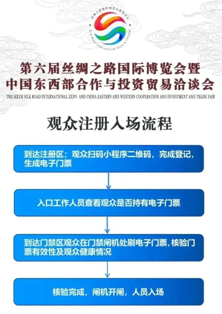 1.关注丝博会微信公众号或扫码进入丝博会小程序,完成实名登记,生成电子门票。