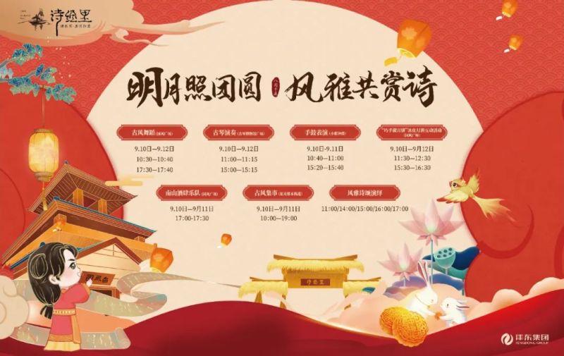 明月照团圆,风雅共赏诗。古琴演奏、古风舞蹈、风雅诗颂演绎……临近中秋佳节,诗经里小镇各项精彩活动已准备到位。观赏最靓丽的风景,品读最有韵味的诗句,更有时尚文艺新玩法,邀您一起来体验。