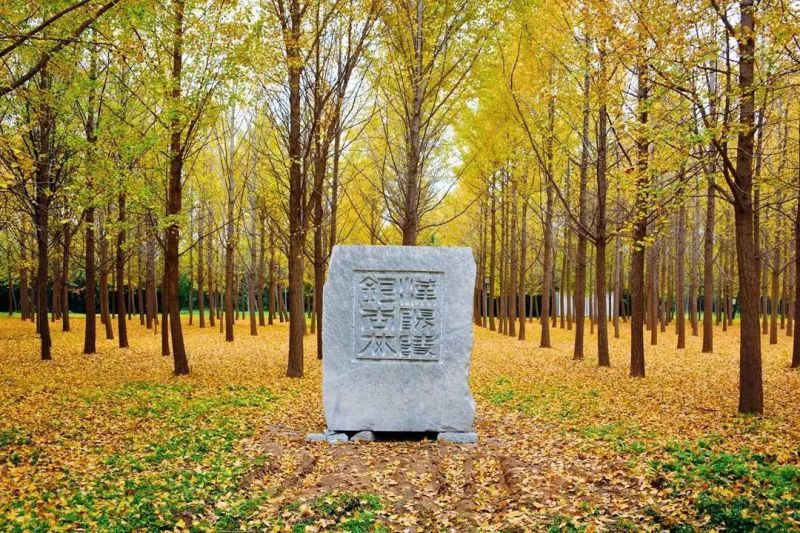 在汉阳陵最引人最浓重的色彩就是金黄上百亩的银杏林树叶已由绿转黄,从空中俯瞰汉阳陵几乎被这浓烈的金黄全部覆盖。
