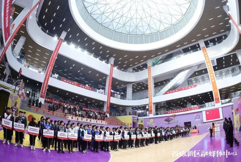 2月17日下午,西咸新区首届全民男子篮球联赛在泾河新城体育中心正式开幕。