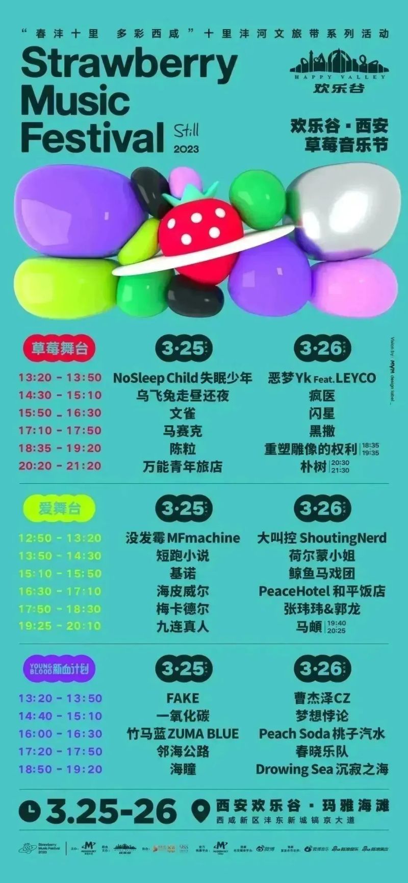 “春沣十里,多彩西咸”十里沣河文旅带系列活动,欢乐谷·2023西安草莓音乐节将于3月25日-26日在西咸新区沣东新城西安欢乐谷·玛雅海滩开启音乐盛宴。