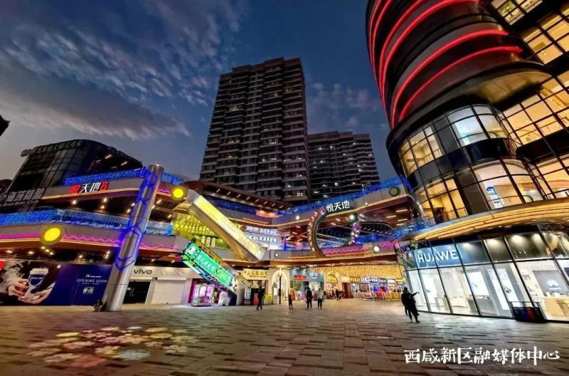除了悦天地步行街,在西咸新区越来越多的夜经济聚集区也不断涌现,有建章路、秦潮里等充满烟火气的美食街区也有万象城、吾悦广场等大型综合体,它们用可口的美食、琳琅的商品、特色的活动、周到的服务点亮了新区的夜。