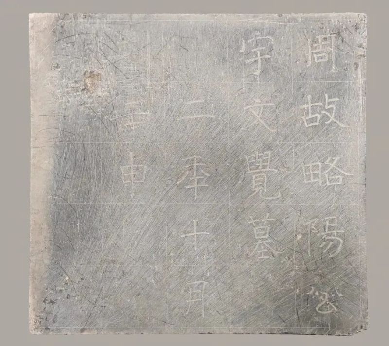 墓志方形素面,正面楷书“周故略阳公宇文觉墓二年十月壬申”15字,并以朱砂描红。据志文内容可确定墓主为北周开国君主孝闵帝宇文觉(542-557),《周书·孝闵帝纪》载,宇文觉为宇文泰嫡子,九岁获封略阳郡公,周元年(557)正月即天王位,十月被害驾崩。建德元年(572)周武帝诛杀权臣宇文护后,追谥宇文觉为孝闵皇帝,陵曰静陵。本次发掘表明宇文觉于周二年(558)以“略阳公”的身份安葬,该墓即北周静陵。