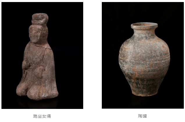 该墓被盗扰,现出土随葬遗物146件(组),集中分布在墓室东南部,且以各类陶俑为主,与西魏、北周墓葬出土陶俑形制基本一致,皆为矮小的半模俑。墓志置于墓室入口东侧,盖盝顶方形,素面无字。