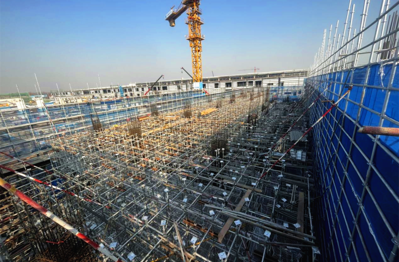 目前,项目车间一主体钢结构已完成100%,正在进行设备安装;车间二主体钢结构完成95%;车间三、四正在全面落实前期施工准备工作。1#110kv变电站主体结构已经封顶,设备已进场安装;3#110kv变电站基础施工及回填完成,已进入主体结构施工;1#废水站基础施工完成90%,主体施工完成70%。
