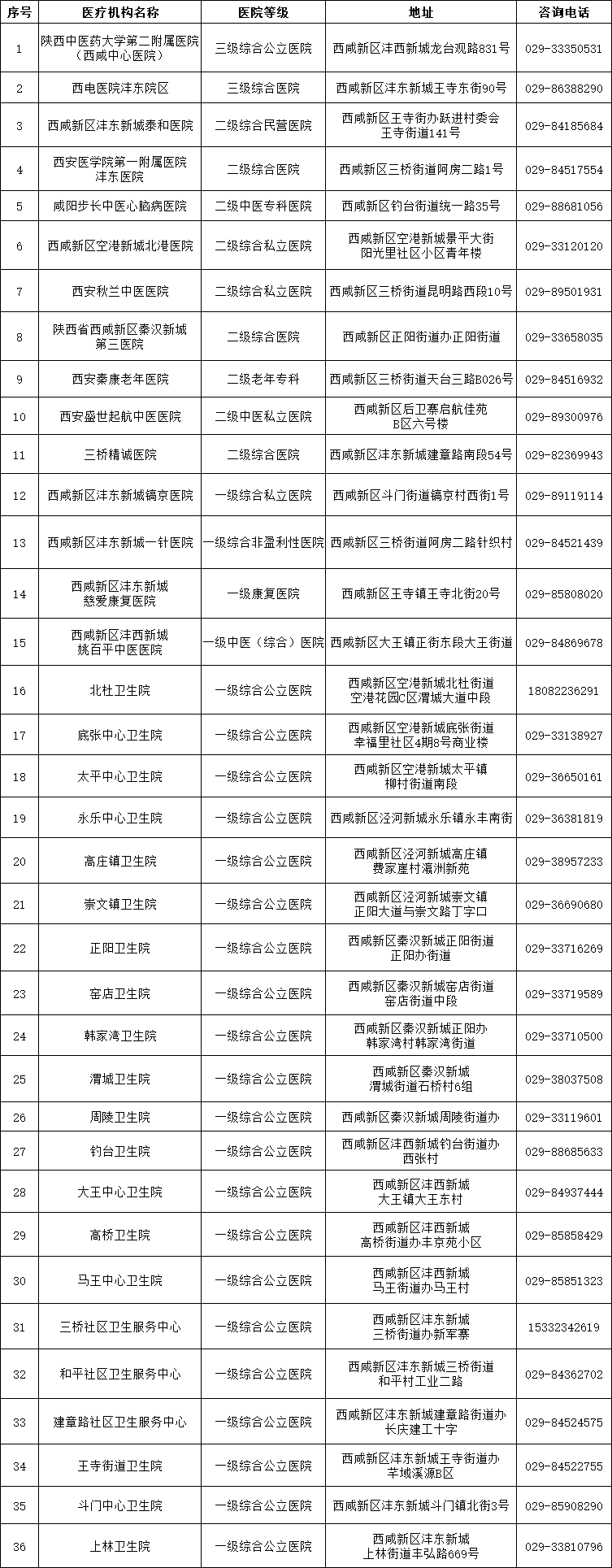 西咸新区实施“一次挂号管三天”医疗机构名单