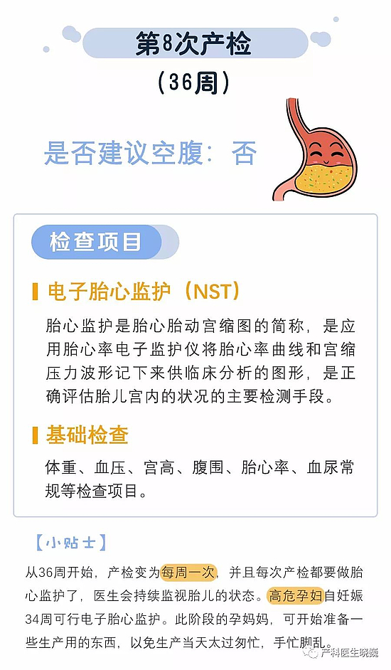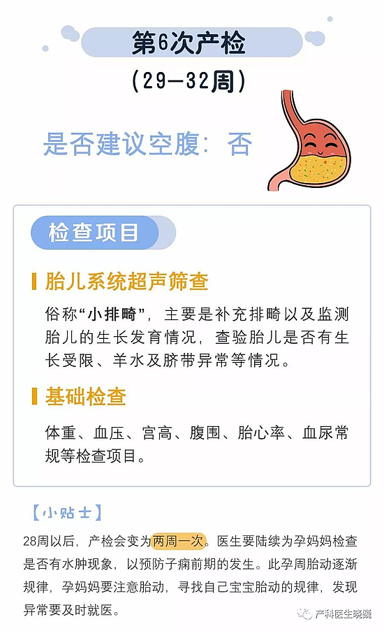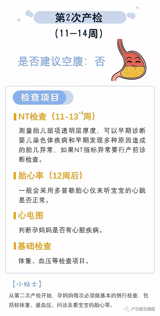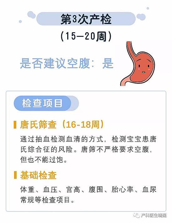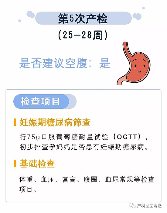 3.血尿常规自怀孕开始一个月必须要查一次;肝功能、凝血功能、甲乙丙肝、糖耐量(OGTT)等检查需要空腹,建议大家每次检查完询问一下医生,下一次产检是否需要空腹。