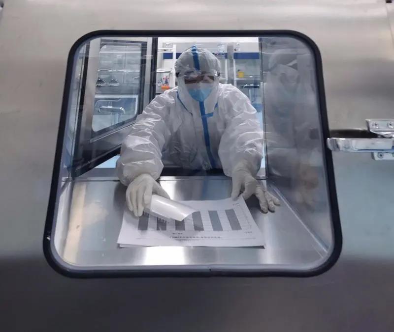 配置好的试剂和实验材料通过专用传递仓传送到标本制备区。