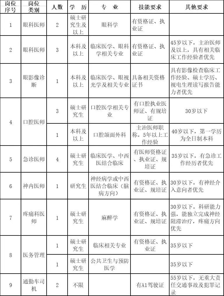招聘岗位及资格条件
