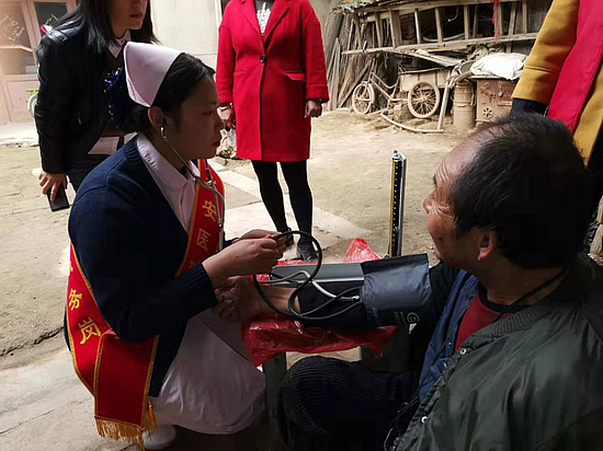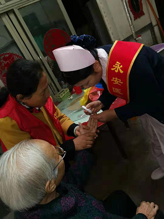 医疗健康护理小分队来到永乐镇永乐社区,为老人们测量血压、血糖,做颈肩按摩、理发、修脚,打扫卫生。小分队成员来到空巢老人家中,与老人拉家常,进行心理疏导,帮助老人解决生活困难,使其感受社会温暖,保持健康乐观的生活态度。同时向社区工作人员、群众宣传敬老爱老观念,积极构建向上向善、孝老爱亲的道德观。