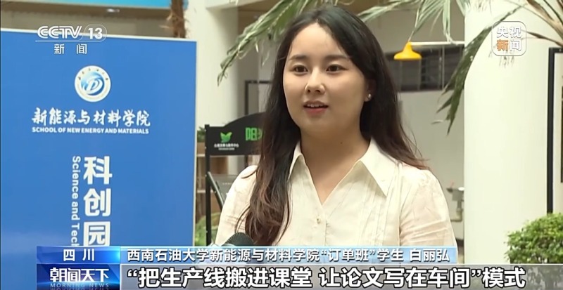 西南石油大学新能源与材料学院“订单班”学生 白丽弘:“订单班”通过“把生产线搬进课堂,让论文写在车间”的模式,让我能够较早进入企业实习,接触学习到行业的尖端光伏技术。