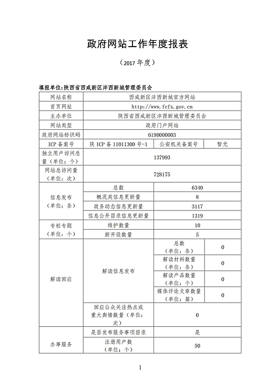 陕西省西咸新区沣西新城管理委员会政府网站工作年度报表