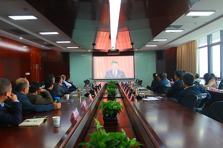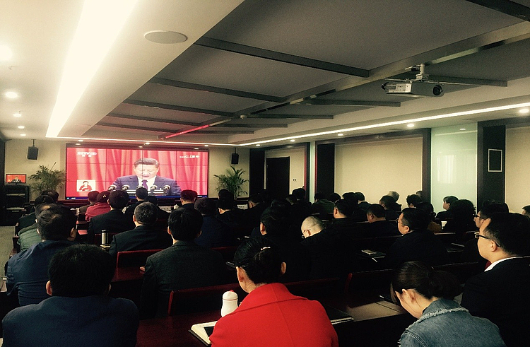 (西咸新区能源金融贸易区集中观看十九大开幕会)