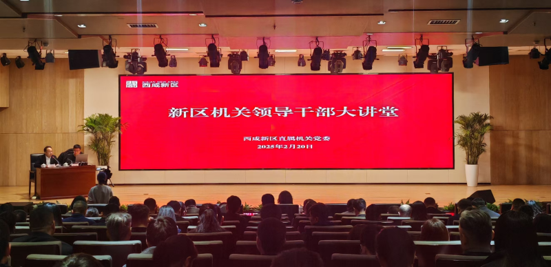 2月20日下午,西咸新区直属机关党委举办第六期西咸新区“机关领导干部大讲堂”。新区先进制造业促进局局长刘高波同志以“以新促质,培育‘空地一体’新兴产业”为题,重点围绕低空经济和智能网联汽车两大新兴产业领域展开讲座。新区机关副处级以上干部和部分员工代表200余人参加。