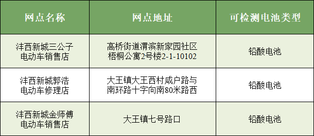 为深入推进西咸新区电动自行车全链条整治行动,健全从电池健康监测到废旧电池回收的全流程管理体系,切实保障人民群众生命财产安全,筑牢社会面消防安全屏障。现将新区电动自行车锂电池、铅酸电池健康检测评估网点及回收网点信息公示如下。
