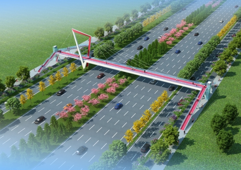 该桥梁位于世纪大道(东段),南侧为现状居住区,北侧为西咸客运枢纽,天桥功能定位为西咸客运枢纽的乘客集散通道,以解决行人过街问题。