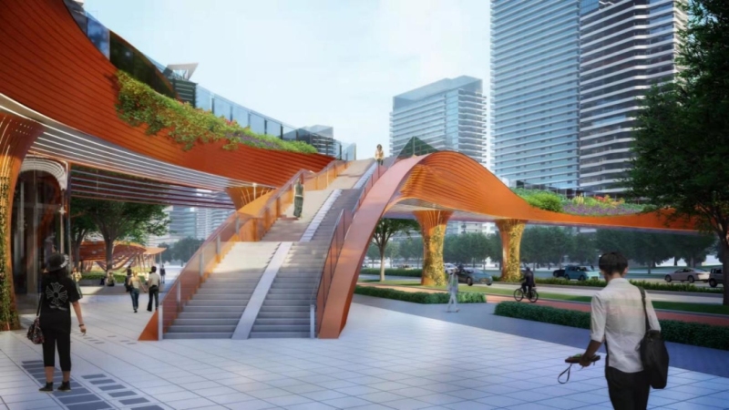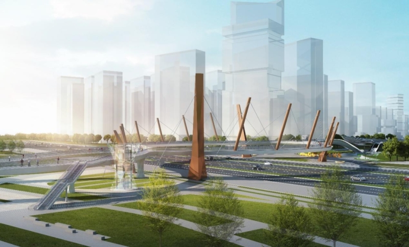 本次天桥方案设计突出文化元素,彰显科技感、现代感和结构美,兼具强烈的视觉表现,与周边环境和谐共处,力求打造能源金贸区独特的城市景观。