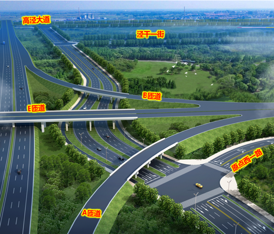 道路工程位于西咸新区泾河新城泾河北岸,呈南北走向,北起原点西一路,止于高泾大道,道路全长1026.637米,红线宽度40米,是连接泾河新城隆基产业园区与院士谷核心区的一条重要南北向市政道路。该市政道路从下穿过G65(包茂高速)的泾阳立交E匝道,与泾阳立交A、B匝道的连接处为填方路基,根据设计方案将对A 、B匝道实施路基改桥。