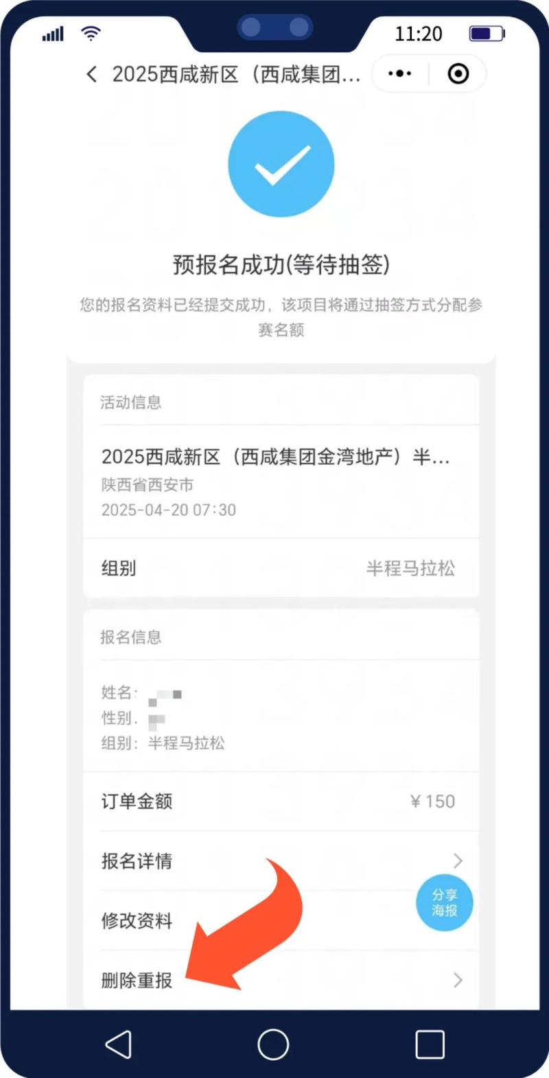 在3月7日18:00前,已报名选手如需更改参赛项目,可在「参赛助手」小程序-「报名查询」中输入证件号,滑动至报名详情页面底部,点击「删除重报」按钮,完成上述操作后即可重新选择项目进行报名。