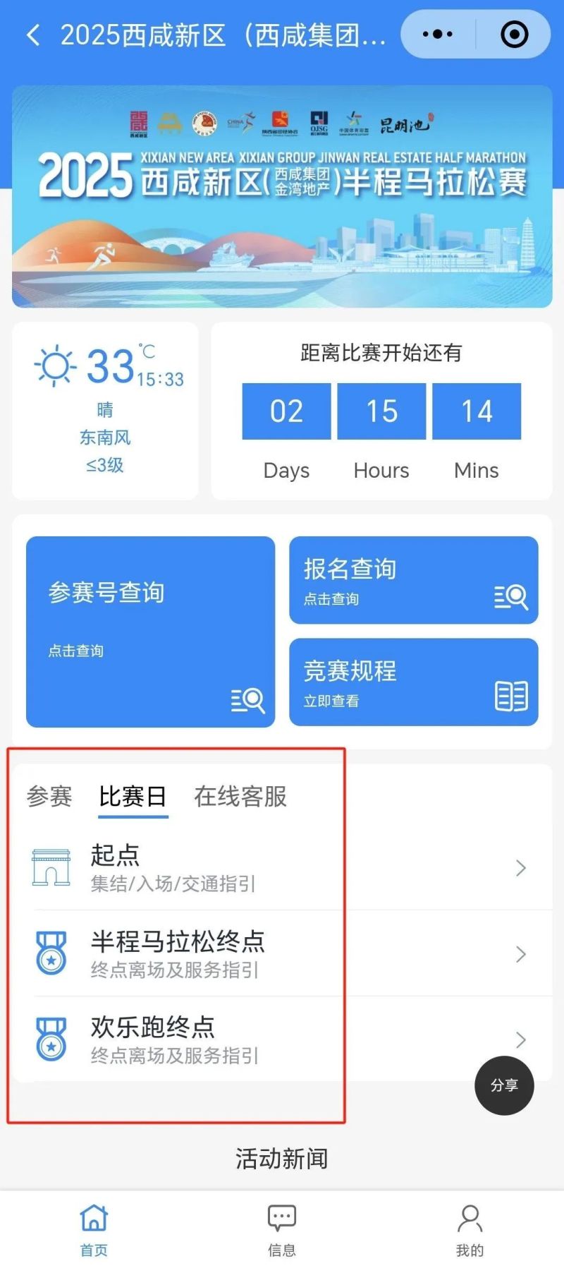 参赛助手小程序查看赛事当日入场指引
