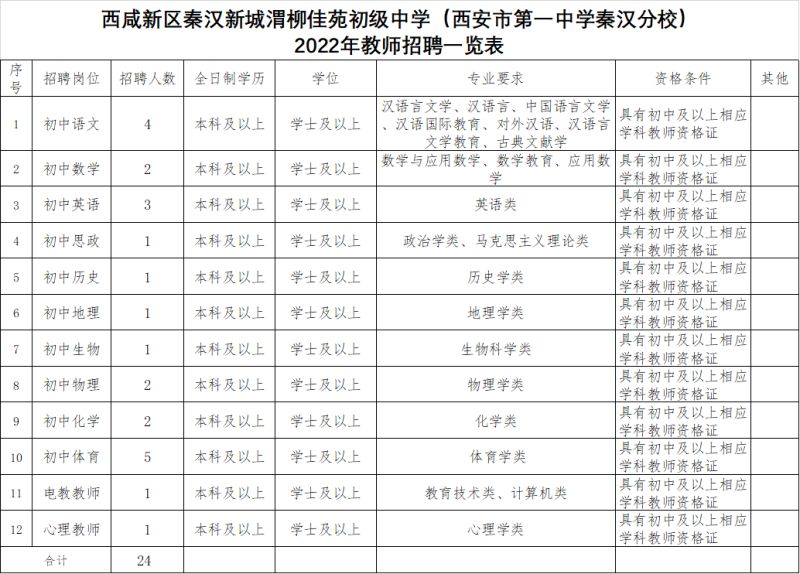 通过西咸新区秦汉新城渭柳佳苑初级中学微信公众号(渭柳中学)发布招聘公告,公告期不少于7日。