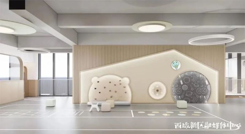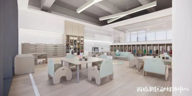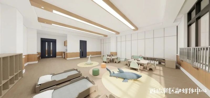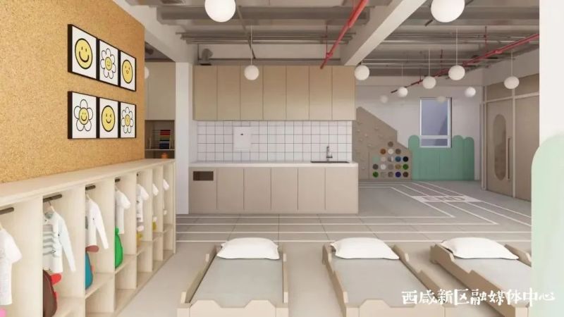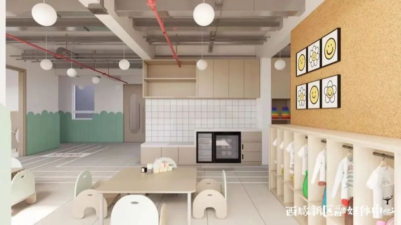 托育中心位于中国西部科技创新港附近创新港第一幼儿园内,建筑面积436平方米,设置一个班级,设置感统区、阅读区、生活区、游戏区等功能区,招收6月龄-3岁婴幼儿,中心毗邻西安交通大学创新港校区与西安交通大学附属创新港医院,面向高校、医院职工子女及周边居民子女提供托育服务。