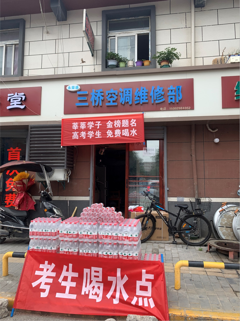 (沣东二中考点附近,爱心商家为考生提供免费饮用水)