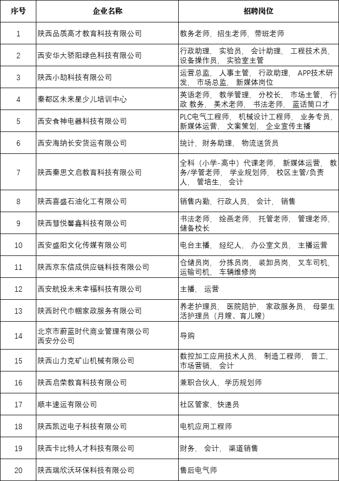 招聘企业及岗位名单