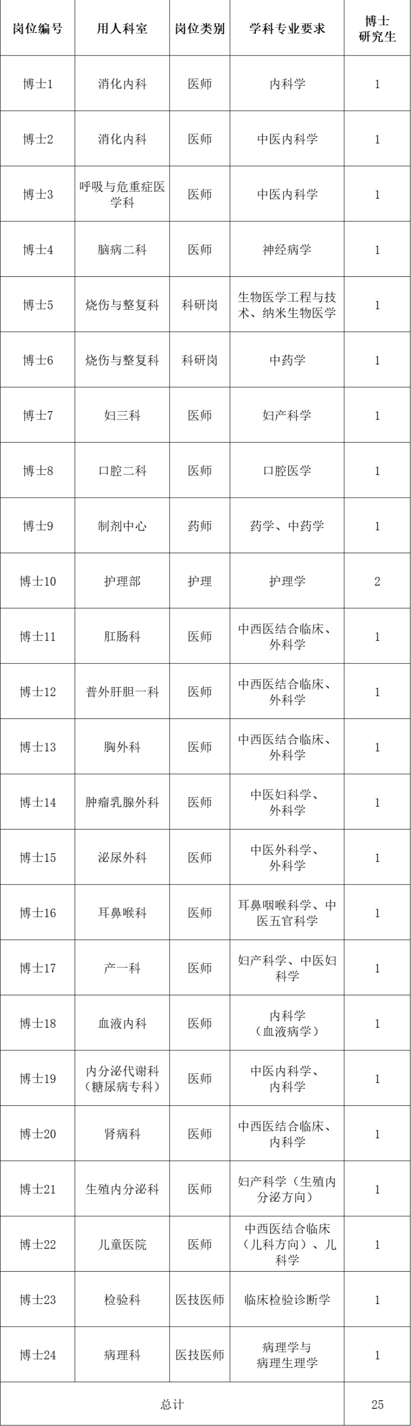 陕西中医药大学第二附属医院2025年度博士用人计划表