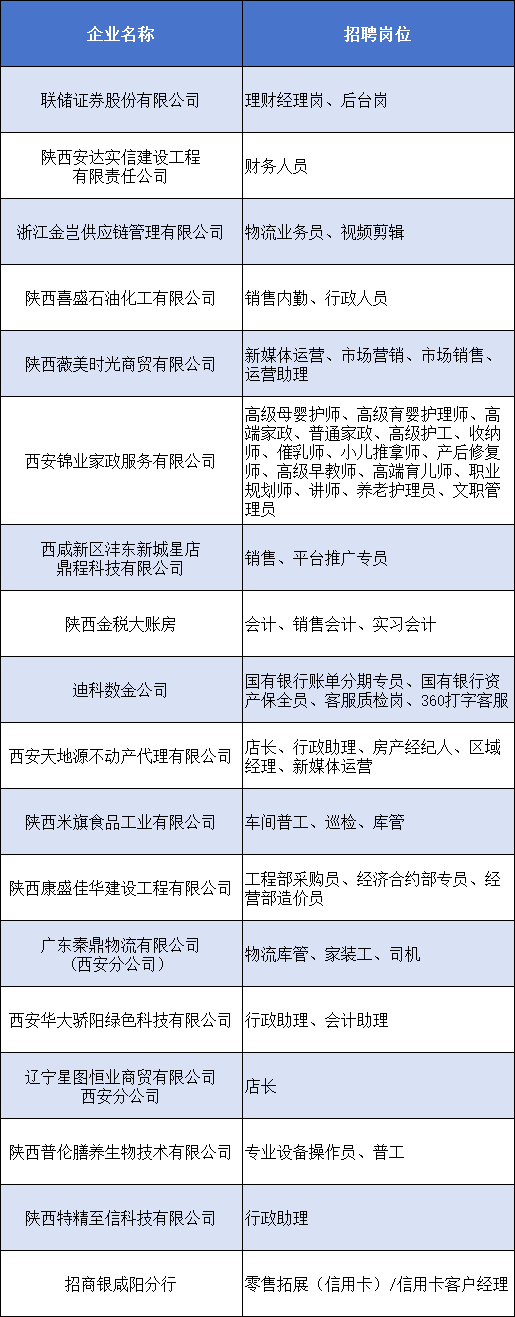 招聘企业及岗位名单