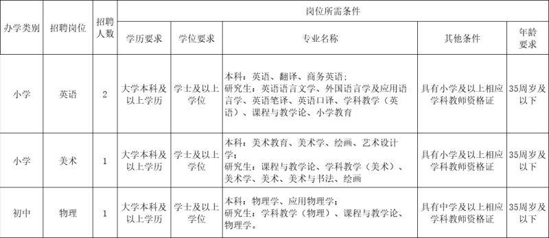 报考教师岗位的,满足以下条件之一者,学历可放宽至大专,专业不限,教师资格证学科不作要求,年龄放宽至45周岁(1979年7月14日以后出生)。