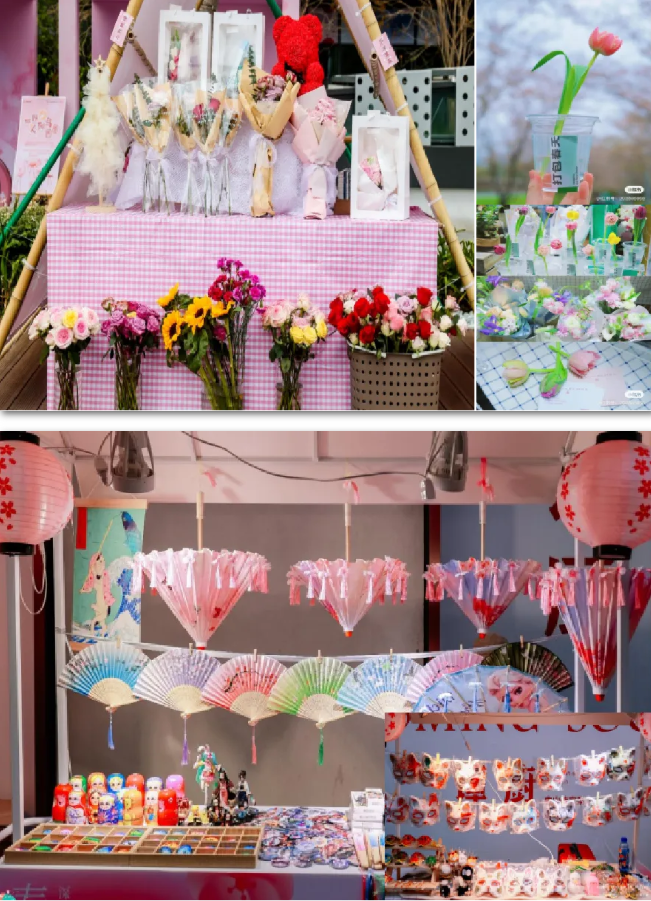 限定花店、非遗手作小铺为你展示网红郁金香杯花、多头玫瑰、非遗风筝、古风扇子、面具……一系列春日限定美好让欢乐延续。
