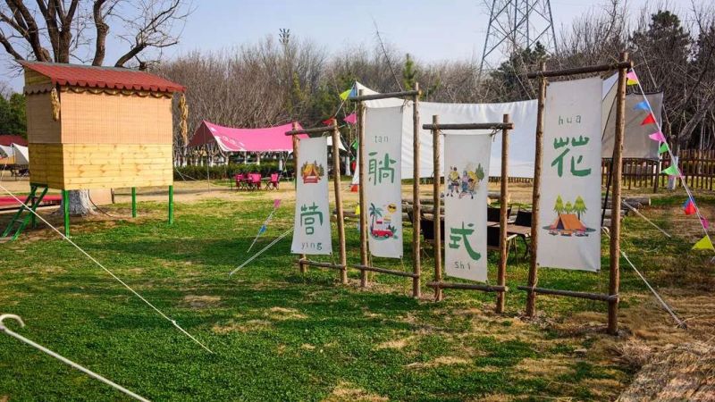 花海如画,白沙如雪,沣渭生态景观区也是搭建帐篷享受野趣的好地方。