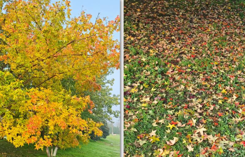 不同于单一的落叶景观,这里能同时邂逅多种景致,斑斓落叶铺就的“丝带”路面,风中摇曳的狼尾草、苍翠竹林与素白芦苇的撞色搭配,自然野趣与生活气息交融,适合慢悠悠逛享时光。