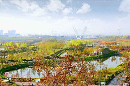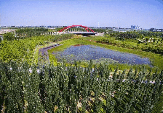 这里梯级跌水景观、高低变换的台地梯田,通过植草绿化,布置花草灌木、观赏步道、生态湿地、景观水系、健身设施等进行相互连接,形成人水亲近的“田园特色、郊野风貌、大地景观”的景观效果。如果你觉得还不够,还可以顺便前往沙河湿地生态修复项目,游览曾一度干涸的沙河,在“引水入城、靓水活城、水绿相融”后所形成的生态文化廊道,感受生态之城的那份恬适。