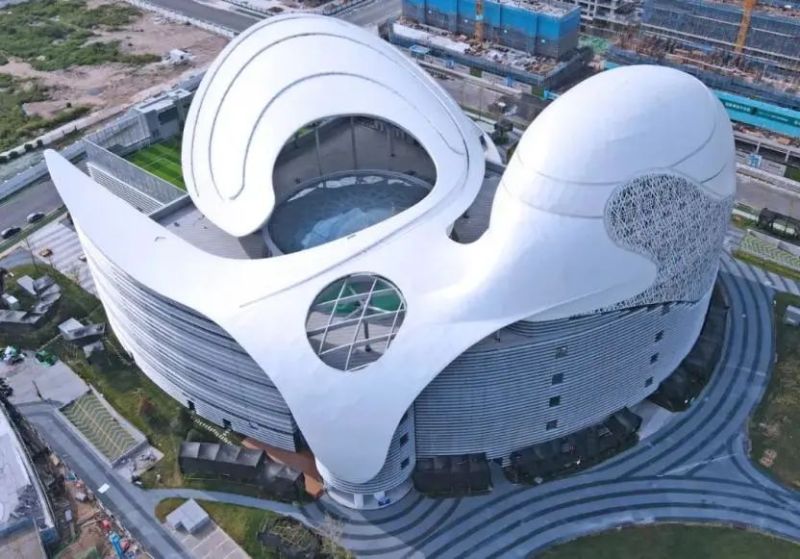 泾河新城体育中心位于泾河之畔,设计灵感源于贝壳,寓意为“河之贝·谷之壳”,这里拥有西北首家台湾大鲁阁旗舰店,西北首家奥飞动漫旗舰店,汇集保龄球、棒球击打、陆上皮划艇和亲子家庭、运动潮人一站式体验,许多动漫IP形象在这里也能找到。