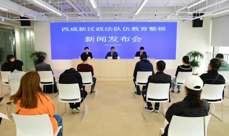 (融媒体中心 王鹏)4月12日下午,西咸新区召开政法队伍教育整顿第二次新闻发布会。西咸新区政法队伍教育整顿领导小组办公室常务副主任、新区党工委政法工作部部长张利军通报了第一阶段学习教育环节开展情况,并就第二阶段查纠整改环节工作安排作以介绍。新区政法队伍教育整顿领导小组办公室副主任、新区党工委宣传部副部长董知行主持,新区政法队伍教育整顿领导小组办公室副主任、新区党工委政法工作部副部长张洪波参加,30余家中央及省、市主流媒体参加。