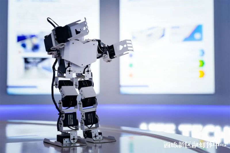 在展品台里,陈列着的各类“高精尖”电子元器件、新材料等展品引起了大家的浓厚兴趣,纷纷拿起手机拍照记录,详细询问企业负责人产品使用场景和技术优势。陕西酷哇智能科技有限公司开发的酷哇机器人就是其中一例。