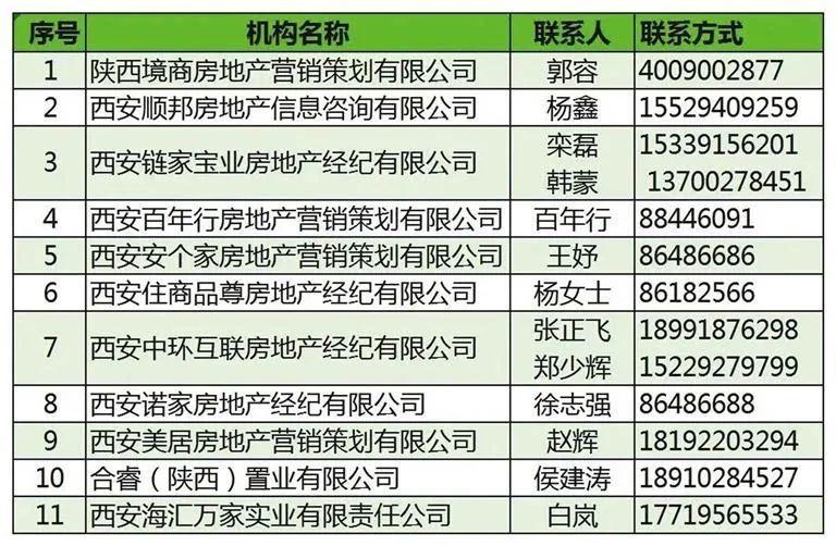 参与西安市“以旧换新”活动的首批房地产经纪机构名单